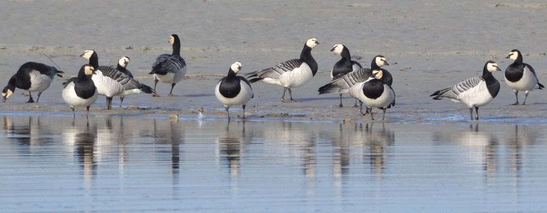 230 barges rousses, 550 bécasseaux maubèches ainsi que 480 bernaches cravant, en mer plusieurs centaines de macreuses noires sont présentes.