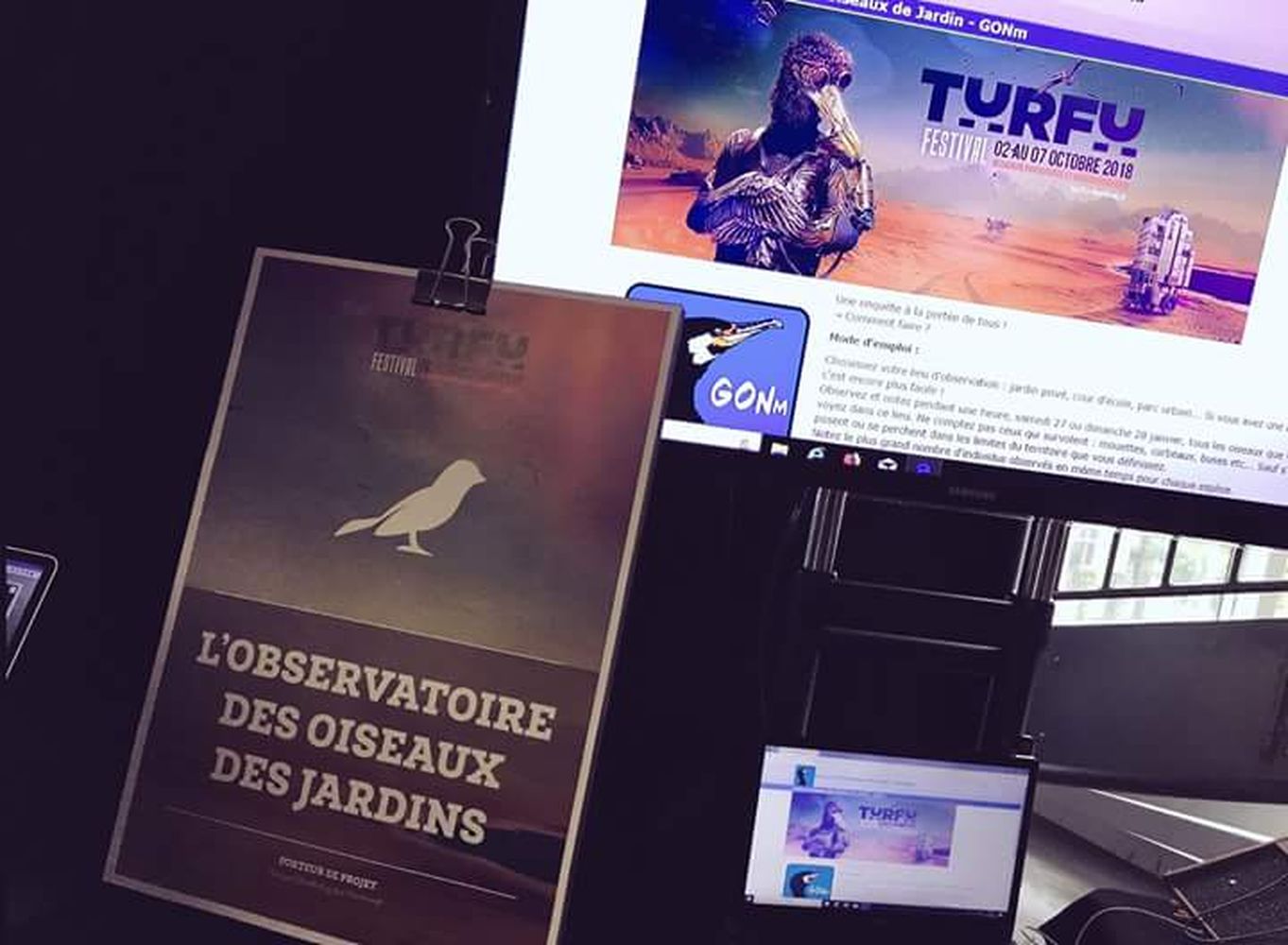 "Franc succès pour le stand "Grand Comptage des Oiseaux de Jardin" tenu (dans le cadre du Turfu festival au Dôme de Caen) le week-end du 6 et 7 octobre. Quelque 200 personnes de tout âge se sont amusées à identifier les 15 espèces d'oiseaux disséminées dans la salle. Ce jeu étant destiné à les initier au comptage des oiseaux. Je les ai briefés ensuite sur les différentes techniques du véritable comptage et de sa saisie en ligne. La plupart des personnes se sont montrées motivées et nous ont donné rendez-vous les 26 ou 27 janvier 2019 !