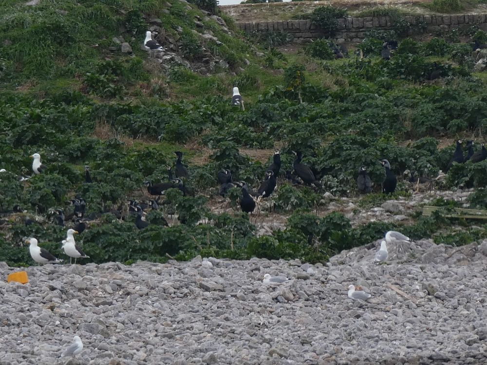 La visite s'est poursuivie sur l'île de Terre pour le comptage des nids et oeufs de cormoran huppé et de grand cormoran. La présence de 5 eiders dont 2 femelles, de plusieurs harles huppés dont 1 couple et de quelques tadornes laissent entrevoir des nidifications encore plus remarquables cette année.