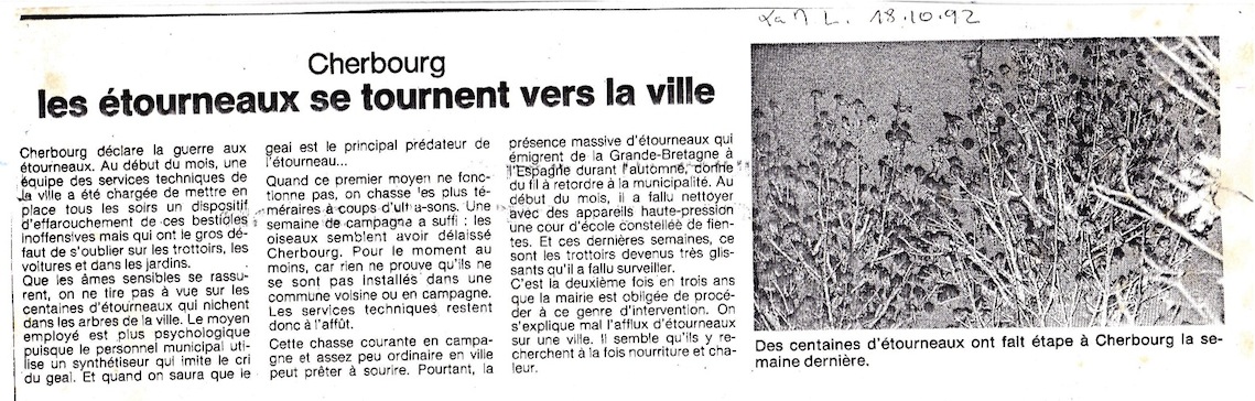 1992 - étourneau - dortoir - Cherbourg - effarouchement -