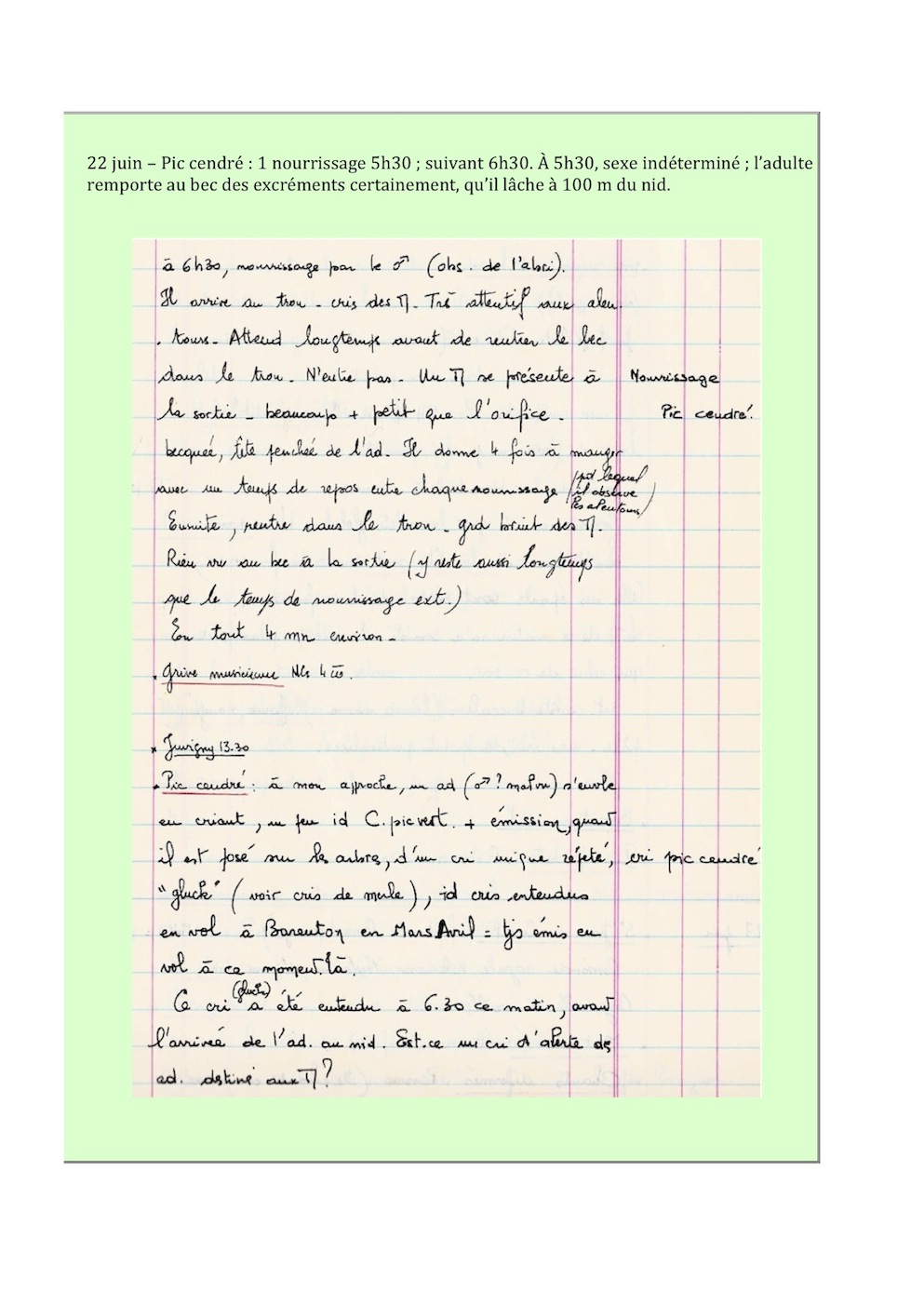 Les documents suivants rapportent la chronologie des observations. Une fois la certitude de l'installation du couple, après contact avec Gaston Moreau, un abri simple est installé à distance puis rapproché progressivement. G Moreau viendra photographier les pics le 27 juin 1973.