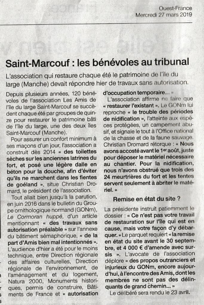 Après avoir bien suivi (et soutenu, peut-être sans le vouloir) les amis de l'île du Large, Ouest-France propose un article contradictoire "Amis vs GONm"qui, malgré la volonté d'équilibrer le débat, semble pencher pour les thèses des amis.