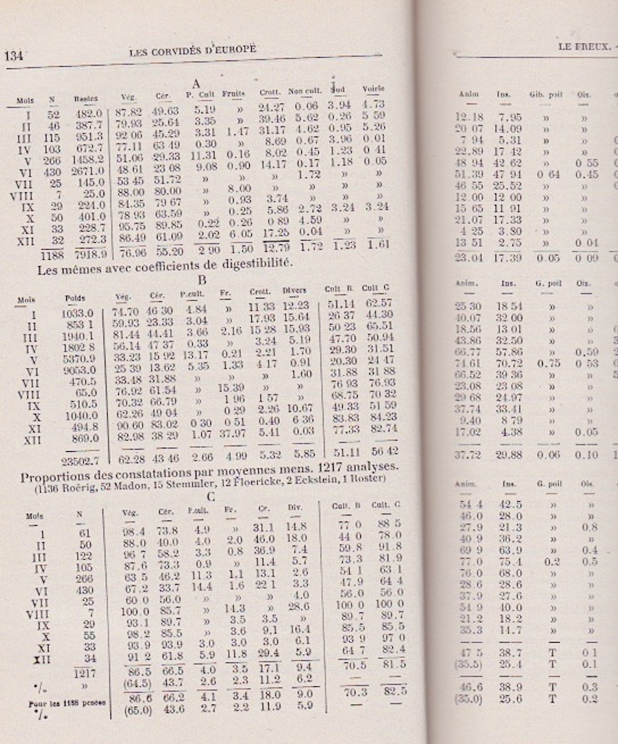 1928 00 00 - Madon - corbeau freux - régime alimentaire - les graines sont déterminées, les insectes classés en fonction de leur place dans la chaine alimentaire. Détruire des insectes prédateurs d'insectes nuisibles devient négatif...