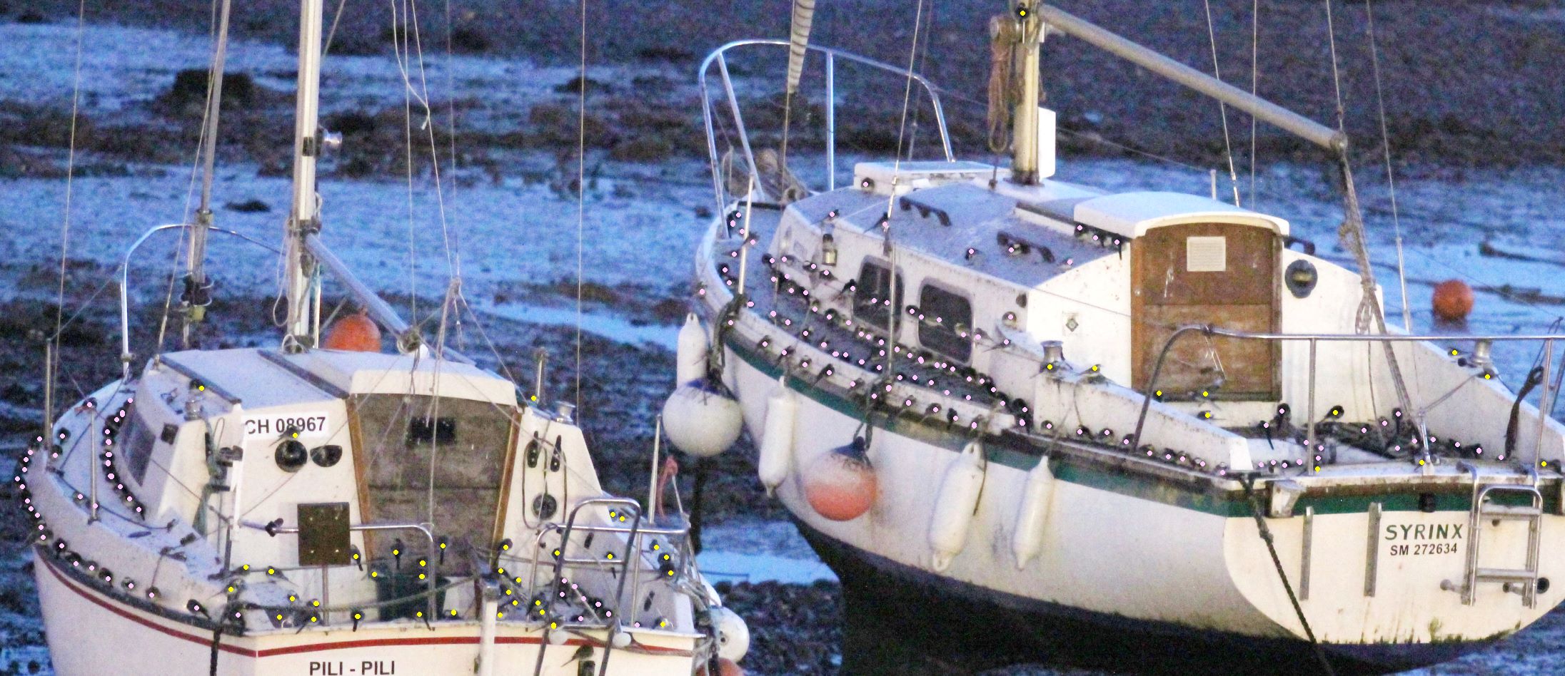 >> 350 = comptage sur photos nocturnes (18h34+) de 5 voiliers au mouillage.