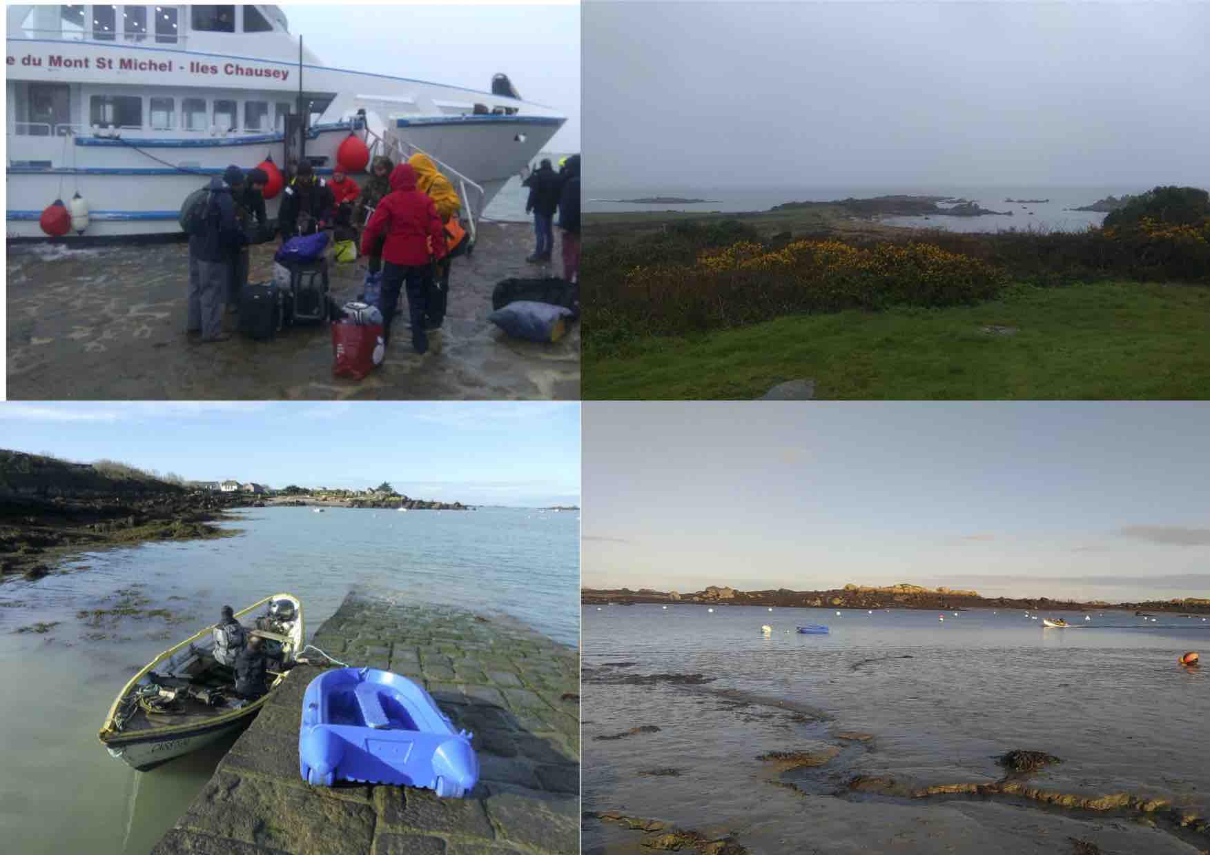 Nous étions 10 le mercredi 15 janvier dernier à embarquer à destination de Chausey. Une fois embarqués (l’embarquement a été assez sportif, sous l’action du vent et de la houle, même dans le bassin à flots du port !) et après avoir jeté un œil sur les prévisions météorologiques, il a fallu nous résigner, comme en décembre, nous ne mettrons pas le Bec-Scie sur l’eau… Comme promis, la traversée a été agitée et le débarquement sur la Grande Ile s’est fait sous une pluie fine … Mais en arrivant de l’autre côté de l’île, une heureuse surprise nous attendait : plus de vent, plus de houle, une mer plate ! Changement de programme, nous disposions encore d’une petite demi-heure pour armer le Bec-Scie et le mettre à l’eau. Ce qui fut fait en un temps record ! Installation faite et sandwich avalé, il nous fallait profiter de cette accalmie inespérée. Sous le soleil, Solenn, Anaïs et Camille ont ainsi embarqué les premiers avant d’être « abandonné » à marée descendante au milieu de l’archipel avec pour objectif le suivi des limicoles, la recherche d’oiseaux bagués … Catherine, Patricia et Patrick ont quant à eux prospecté la partie occidentale de l’archipel en doris avant d’être remplacés par Cyrielle, Patrick et Christian qui eux ont prospecté la partie orientale de l’archipel et recherché des pelotes de rejection de cormoran huppé (une mise en collection qui servira à étudier ultérieurement le régime alimentaire des oiseaux).