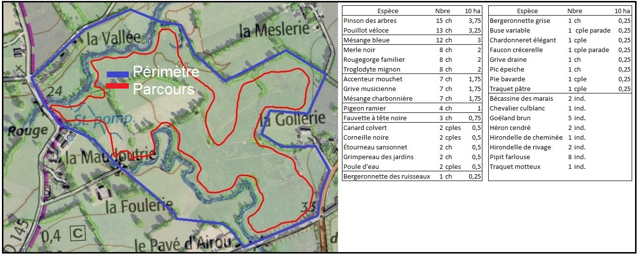 L’ordre et la densité de quelques espèces a néanmoins sensiblement varié, car le milieu n’est pas strictement identique, raison pour laquelle il convient de multiplier ce type « d’inventaire » pour disposer de valeurs significatives, y compris localement dans un milieu comparable.