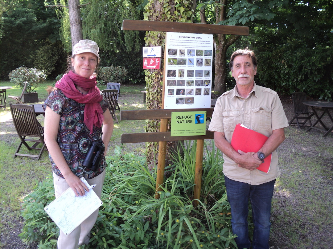 Jeudi 24 juin, nous avons rendez-vous, Anaïs Wion et moi-même, avec les propriétaires du Domaine du Lac pour un point presse ultérieur. Surprise agréable, non seulement le panneau "refuge" est bien en évidence, mais en plus un document affiché à l'entrée expose sous forme de photos les espèces vues lors de la première visite! Quand un refuge débouche sur des pratiques d'information, la démarche est gratifiante pour la correspondante! Le 24 juin, nous avons noté 27 espèces (intérieures) dont le pic épeichette. Sur un vieux tronc d'aulne mort, les loges sont à la taille de cette espèce. Le parc est occupé par un certain nombre de mobil homes. Nous avons rencontré l'un des occupants heureux de nous montrer ses nichoirs et surtout un nid posé sur des éléments décoratifs extérieurs : une nichée de gobemouches gris à l'étroit supporte sans problème la promiscuité avec son voisin humain... Voir plus haut un premier message sur ce refuge (n°391)