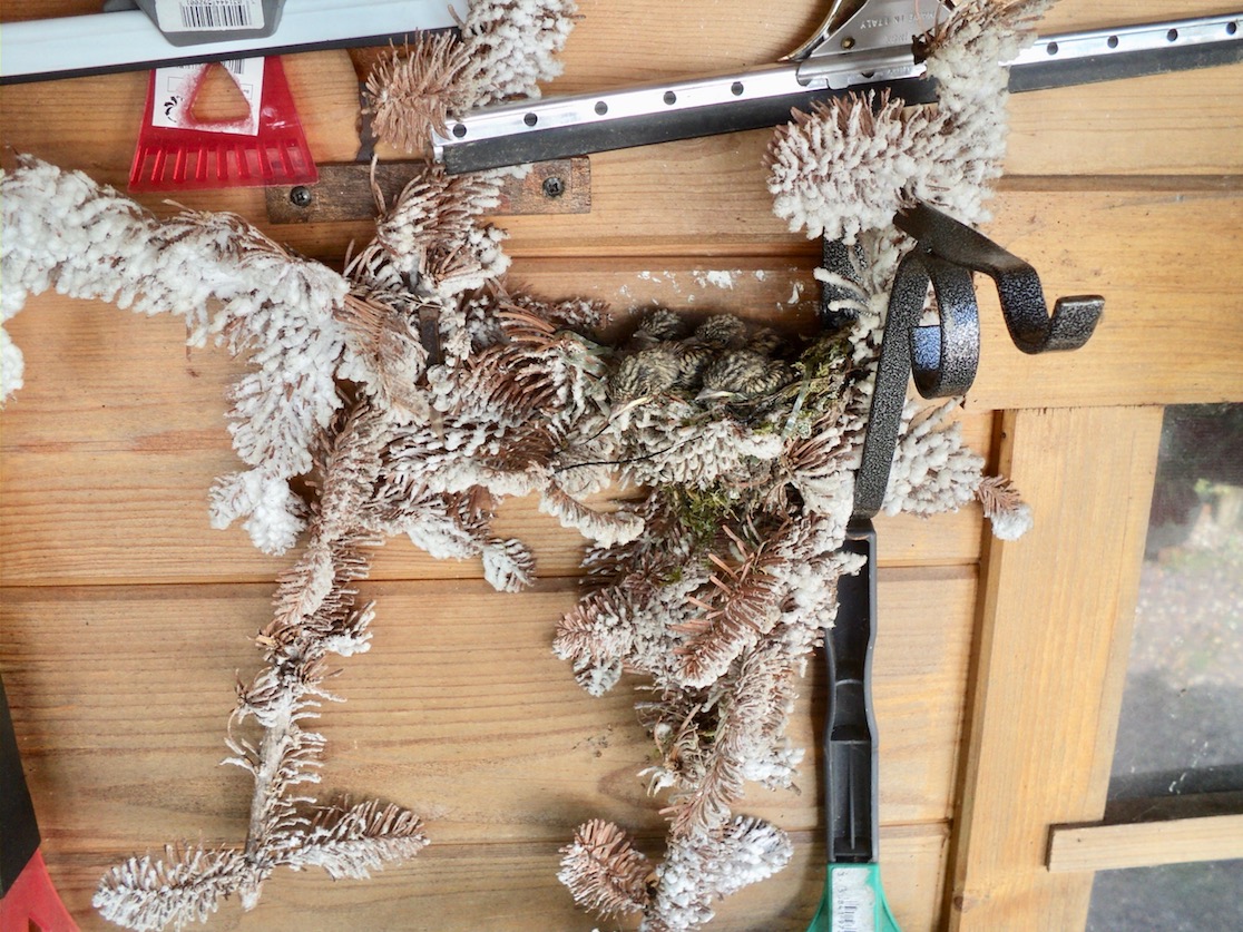 - qui peut donner le nom de l'espèce ayant construit ce nid (25 + cm de diamètre), beaucoup de lichens, des "ficelles" de plastique arrachées à une bâche voisine, et de la terre en sous couche vu le poids. Le nid est tombé sous un chêne, donc posé sur une branche ou une fourche assez forte. -Jean-Louis a vu à plusieurs reprises une grive musicienne extraire des graines de ces fruits de Magnolia à grandes fleurs. Qui a déjà fait cette observation? Pour le plaisir, les cônes d'un résineux exotique planté dans le parc de la Chauvinière: Les pontes de ces insectes ont eu plus de chance que celles du jardin d'Agnès (plus haut) : le pic épeiche passe ici vu les nombreuses cavités creusées dans les branches et troncs morts, sans s'intéresser à l'hôtel à insectes...
