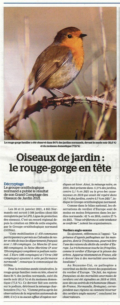 Suite à la diffusion du bilan du grand comptage 2021, réalisée par le GONm vers les organes de presse normands, quelques articles paraissent ici et là.