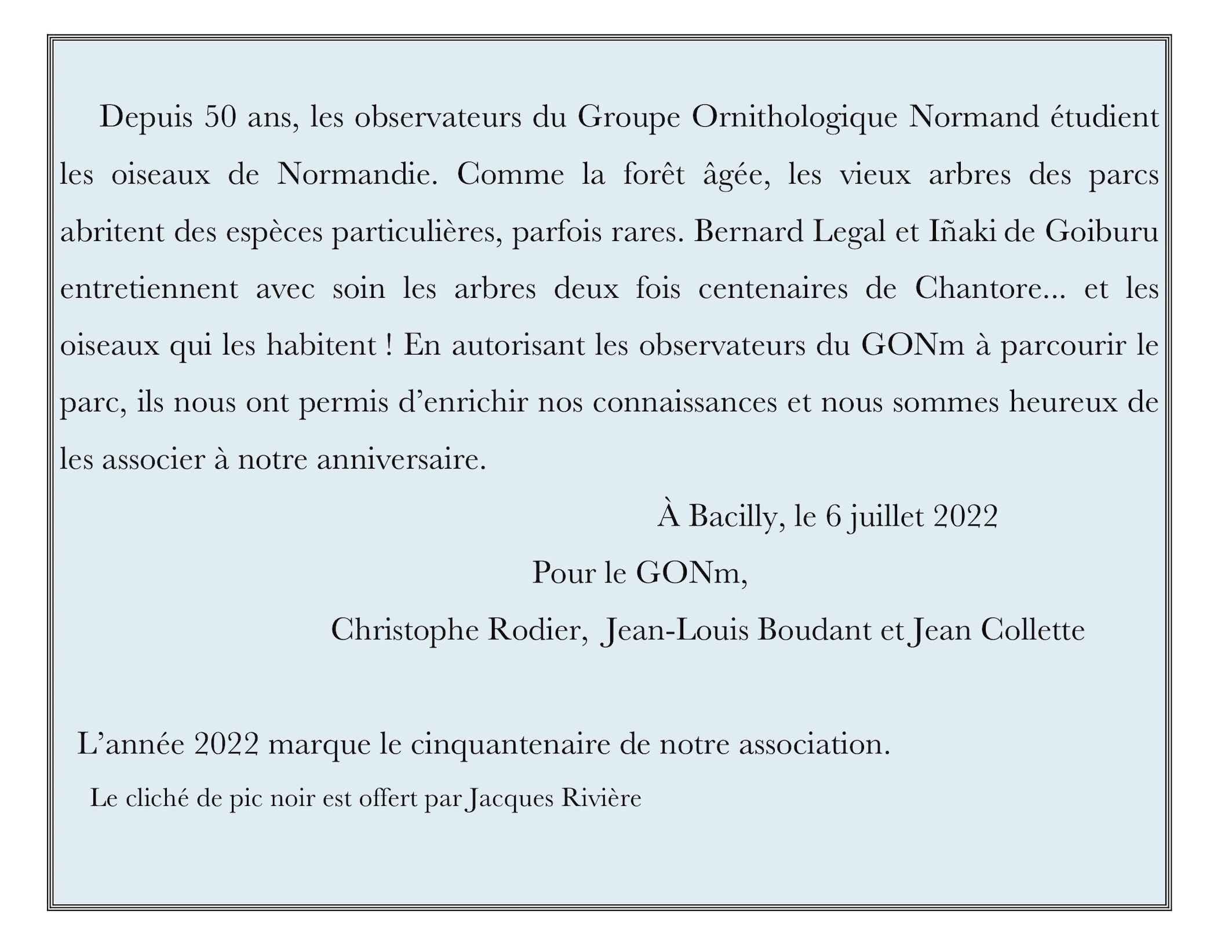 50 ans du GONm : à l'honneur en juillet, le parc du château de Chantore à Bacilly/50