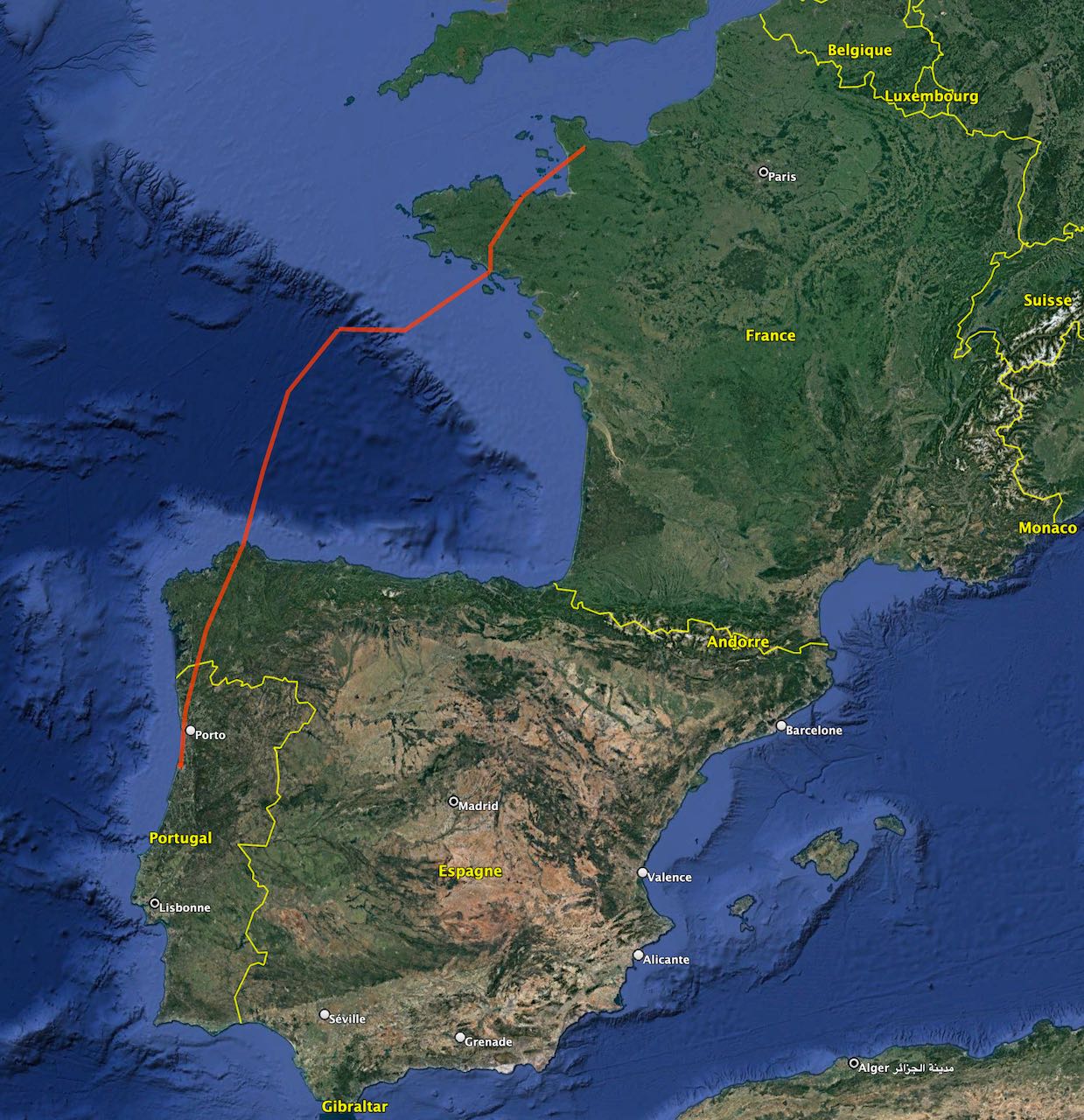 Comme on peut le voir grâce à la trace, le plateau continental a de nouveau eu un impact sur le trajet, qui sans cette déviation dont on ne comprend pas bien la cause, aurait été remarquablement rectiligne.