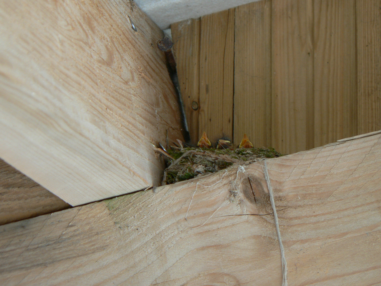 Au presbytère de Rancoudray, un nouveau garage largement ouvert a attiré des passereaux ingénieux : il suffit d'utiliser les bonnes pièces de bois du bâtiment pour s'installer- en bon voisinage pour 3 espèces ce printemps 2024! Le plus étonnant, c'est que le merle et la bergeronnette des ruisseaux ont élevé 2 nichées successives dans les mêmes nids...