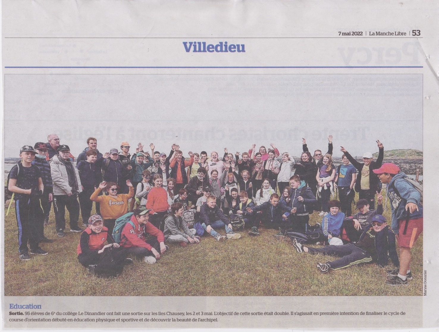 La question de l'usage d'espaces naturels comme terrain de "jeu" a déjà été évoquée à plusieurs reprises ici (par exemple récemment le trail dans la carrière où nichent grand corbeau et pèlerin). Quel gâchis de déplacer 95 collégiens sur Chausey pour une course d'orientation sans accompagner leur séjour d'une approche naturaliste sur ce site exceptionnel, au delà de la seule découverte de la beauté du site... Transcription du commentaire: "Education. sortie. 95 élèves de 6e du collège Le Dinandier ont fait une sortie sur les îles Chausey, les 2 et 3 mai. l'objectif de cette sortie était double. Il s'agissait en première intention de finaliser le cycle de cours d'orientation débuté en éducation physique et sportive et de découvrir la beauté de l'archipel."