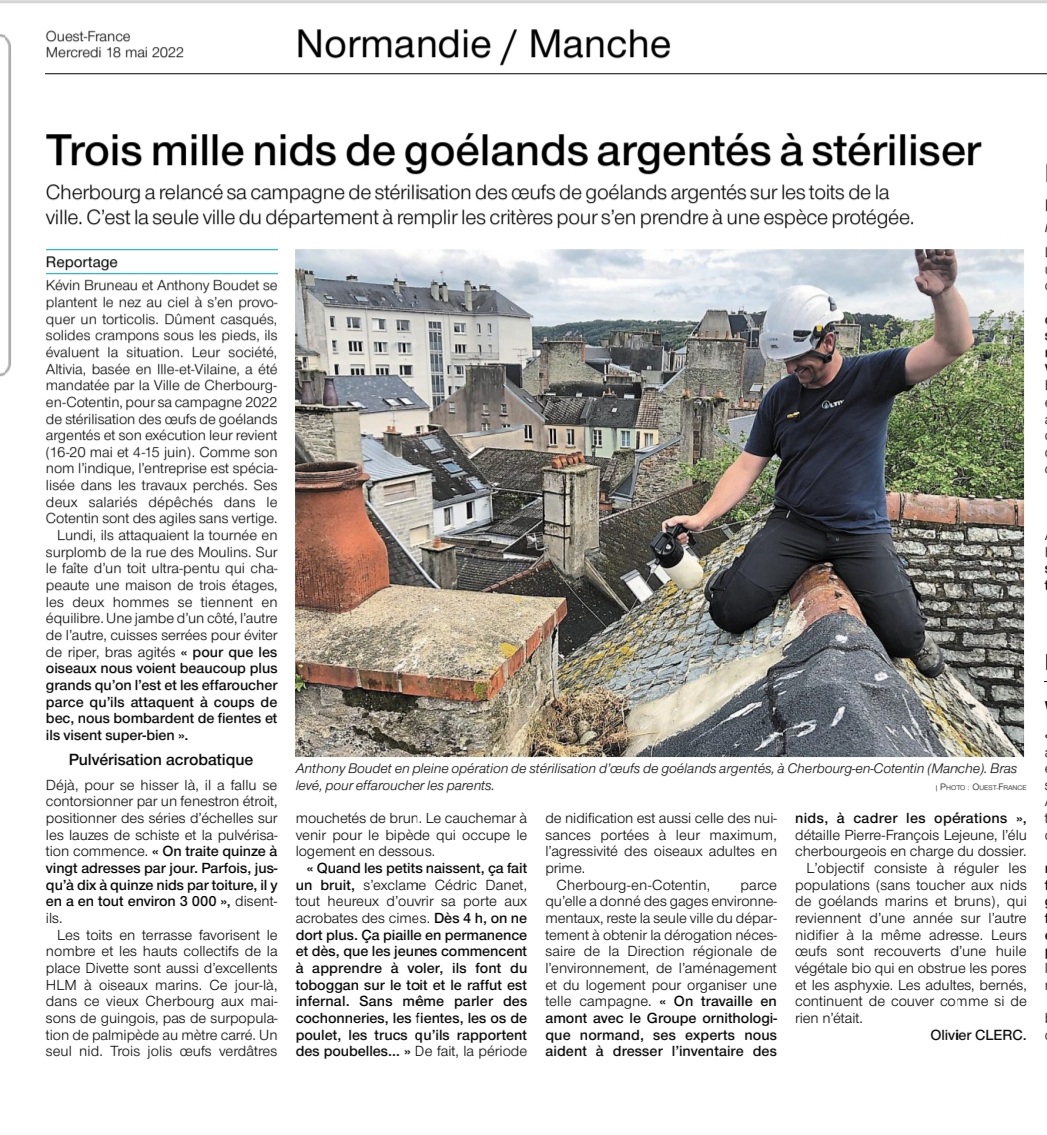 Ci-dessous un article fort bien fait sur l'opération de stérilisation des oeufs de goéland argenté à Cherbourg. Le GONm est évidemment cité comme l'expert de référence.