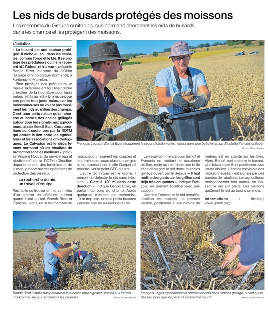 Cet article permet d'en savoir plus sur cette opération de protection des nids de busard actuellement en cours dans la plaine de Caen.