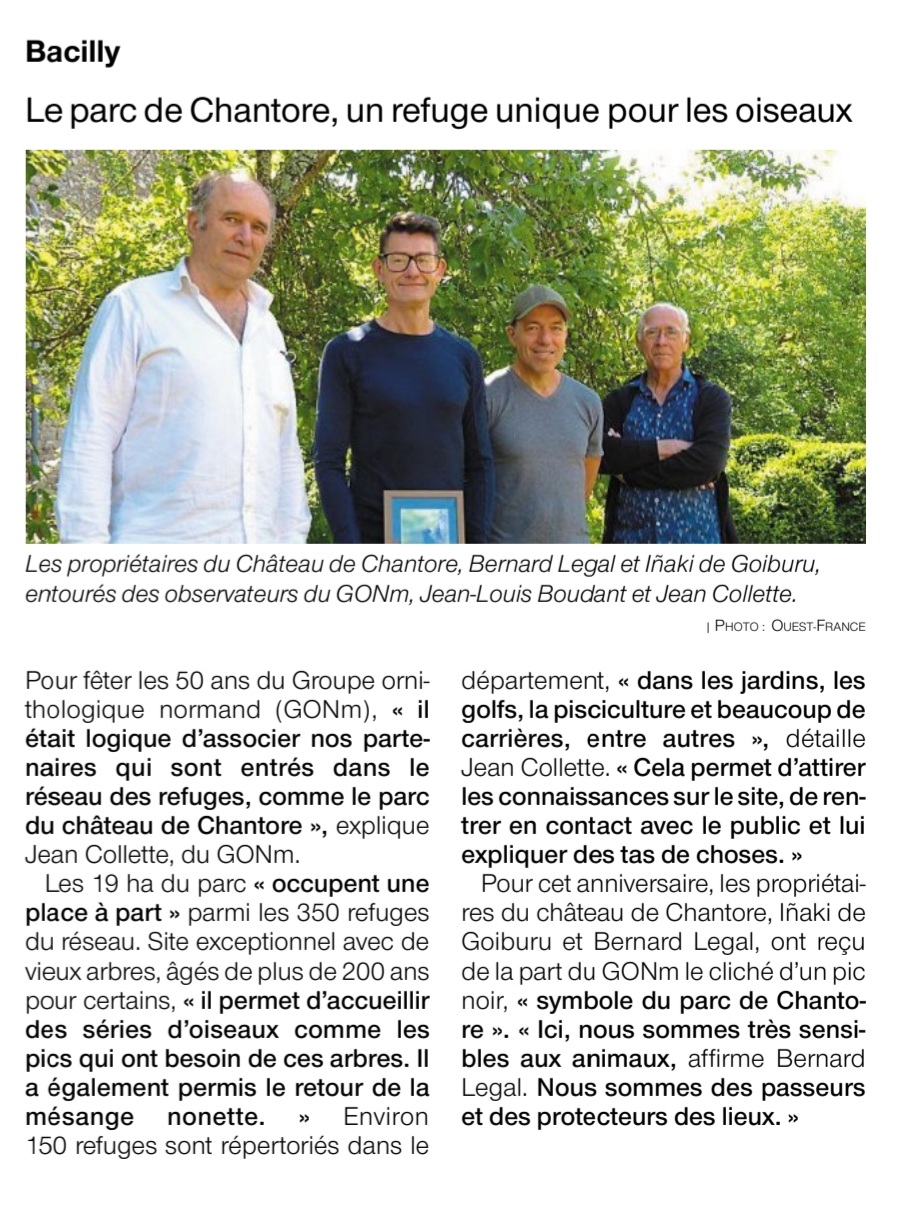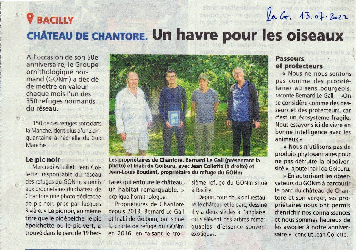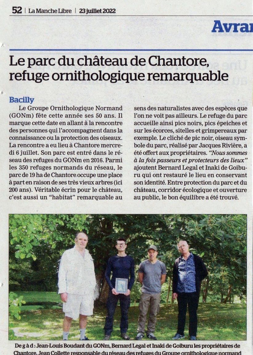 Le refuge de Chantore à Bacilly/50 est un superbe parc anglais du 19ème siècle. Ses propriétaires ont su l'entretenir et l'aménager pour en faire un espace favorable à la vie sauvage. Cela valait bien une photo encadrée de pic noir!