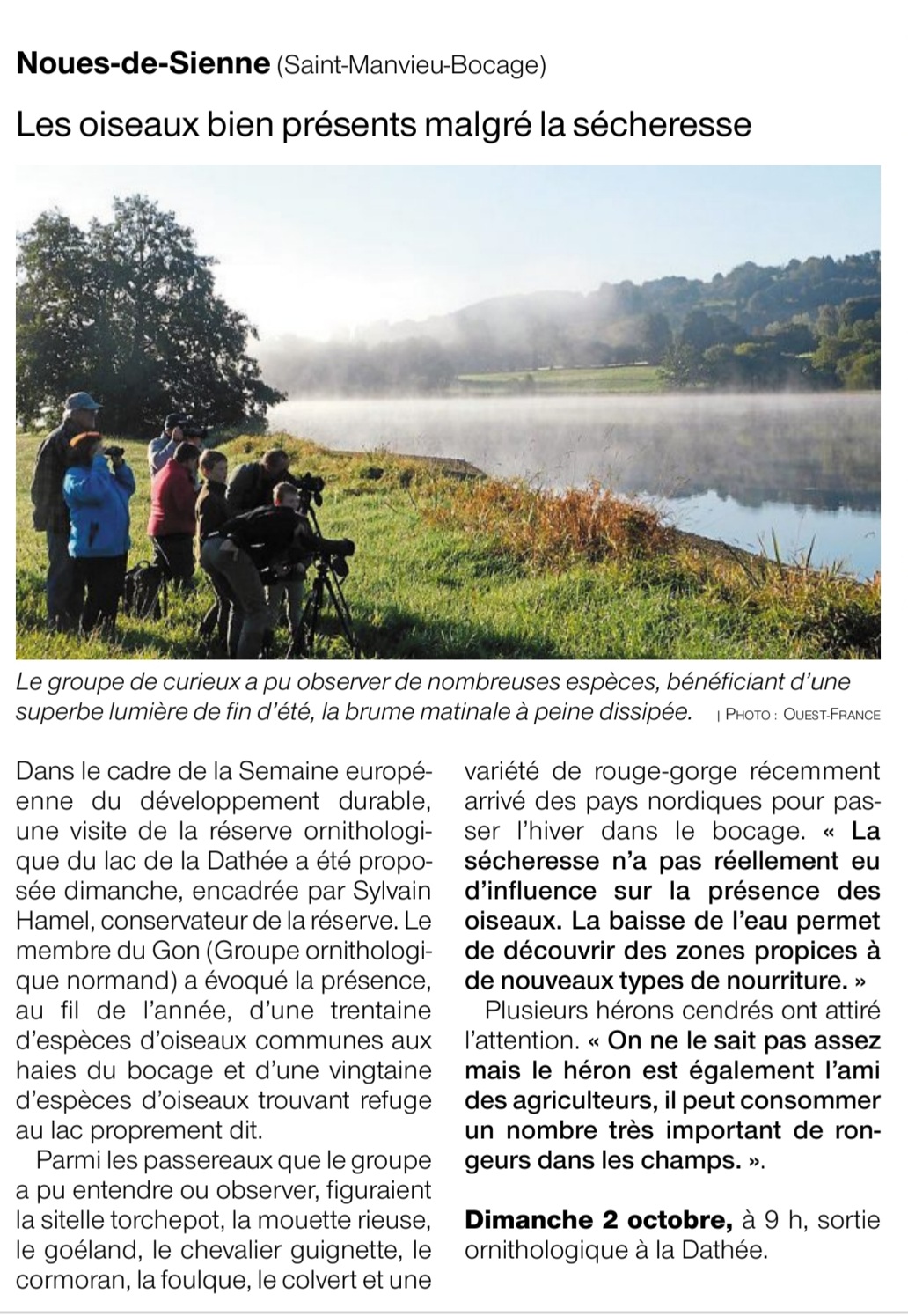 L'article ci-joint relate une animation menée par Sylvain Hamel conservateur de la réserve de la Dathée et en annonce une à suivre le 2 octobre 2022.