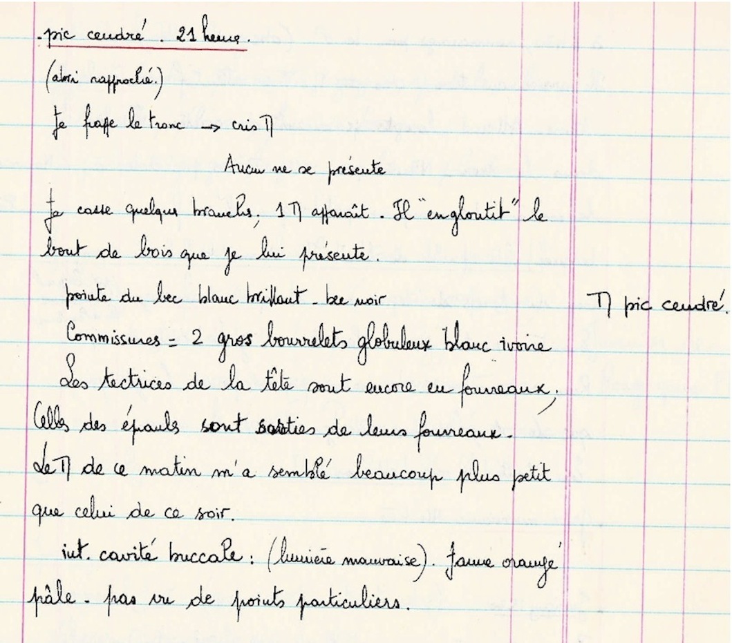 Les documents suivants rapportent la chronologie des observations. Une fois la certitude de l'installation du couple, après contact avec Gaston Moreau, un abri simple est installé à distance puis rapproché progressivement. G Moreau viendra photographier les pics le 27 juin 1973.