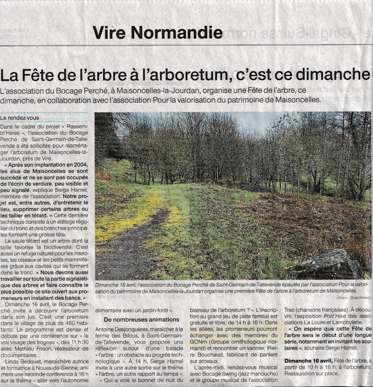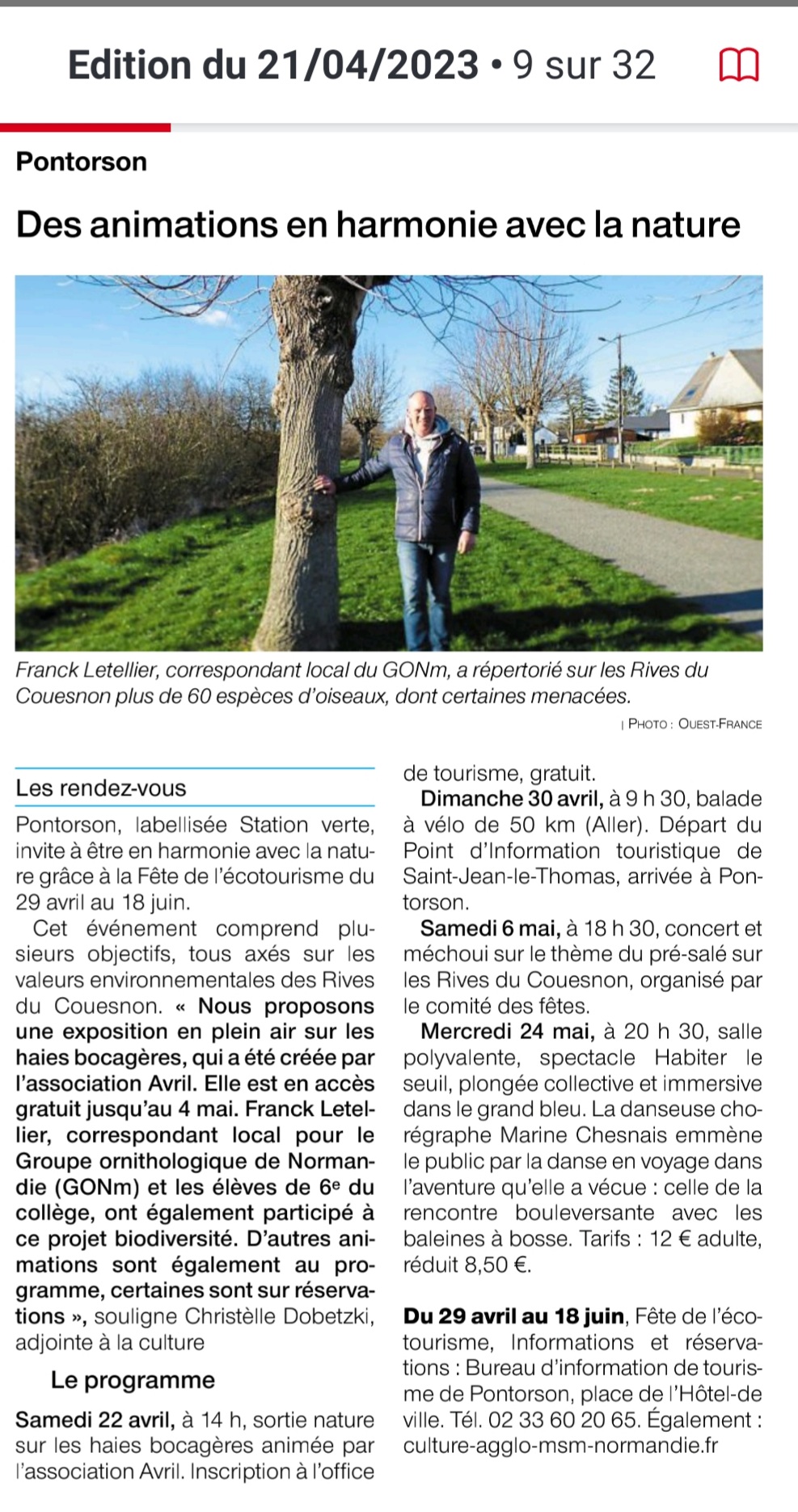 L'association "Le Bocage Perché" organisait dimanche dernier, 16 avril 2023, sa fête de l'arbre à Maisoncelles-la-Jourdan/14. De nombreuses animations étaient proposées et le GONm était là pour accompagner les visiteurs et les renseigner sur les oiseaux de l'arboretum.