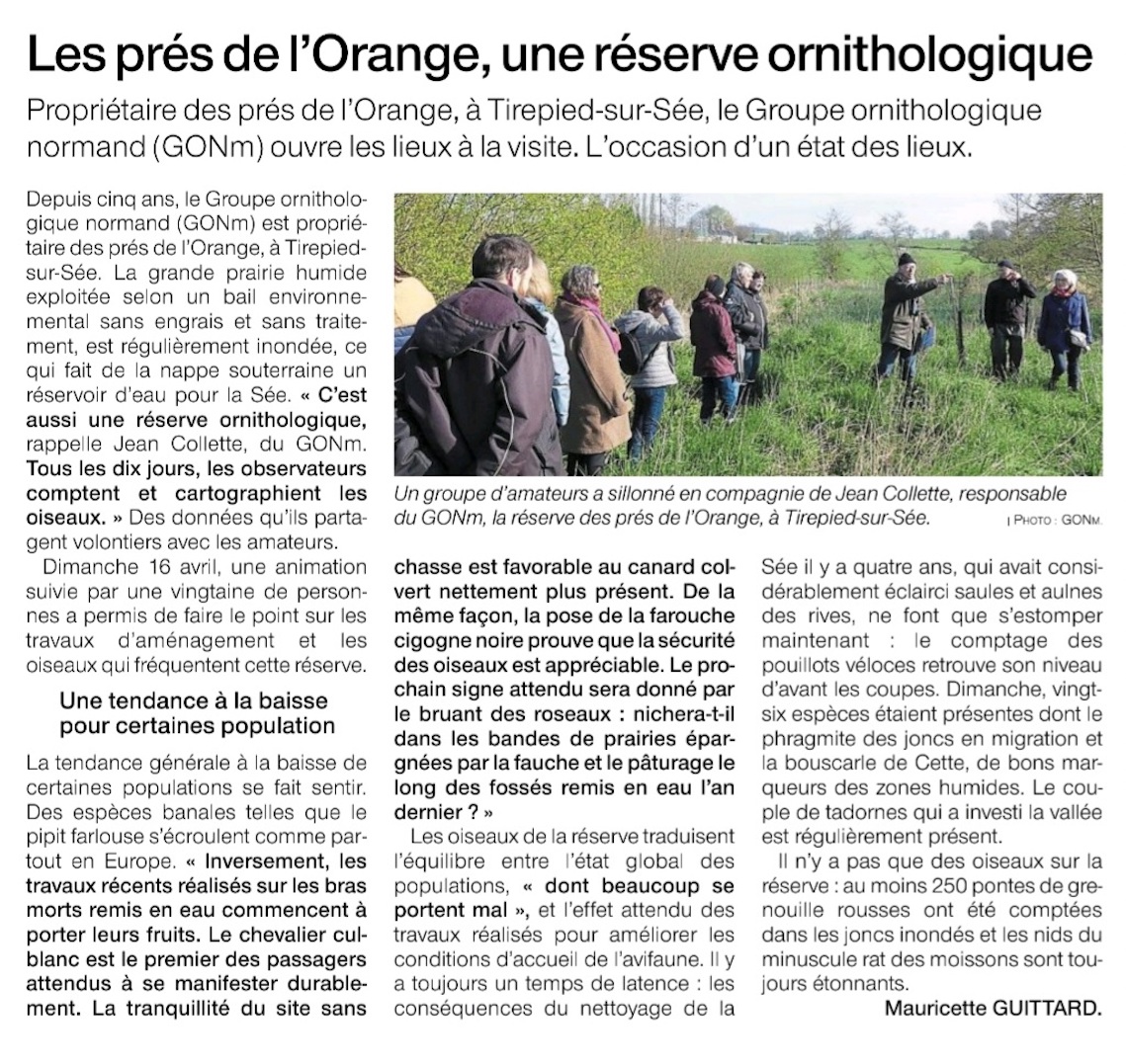 Daphné Lapie sera comme chaque année la référente GONm pour les "gravelots et nicheurs de haut de plage" dans le Cotentin Est. Ouest France s'est déjà emparé du sujet. La preuve ci-dessous, en page Normandie du journal.