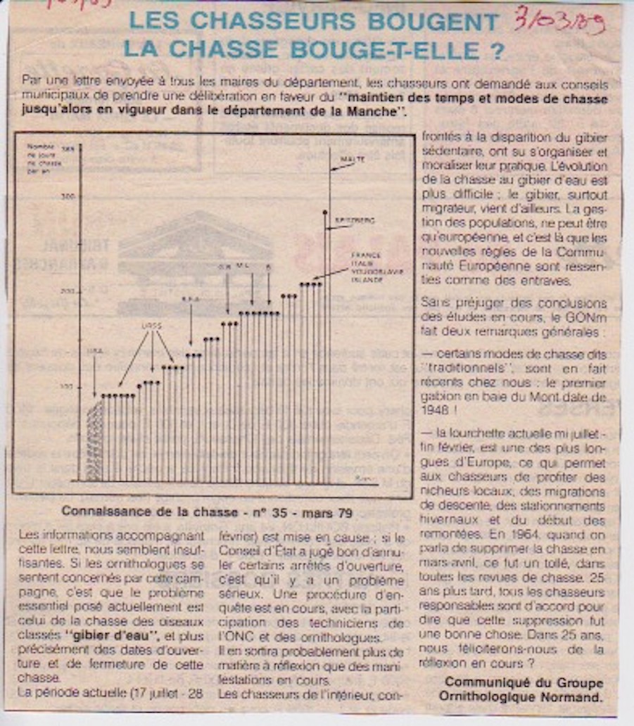 19890303 - chasse - dates - démarches chasseurs - mairies - communiqué GONm -