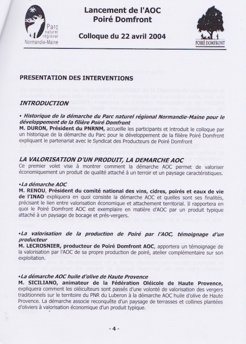 Contrairement à ce que l'on pourrait penser au premier abord, cette information a des racines dans l'histoire du GONm : derrière le "patrimoine culturel", il y a aussi un patrimoine naturel. 2003 10 01 - AOC - poiré - Domfrontais