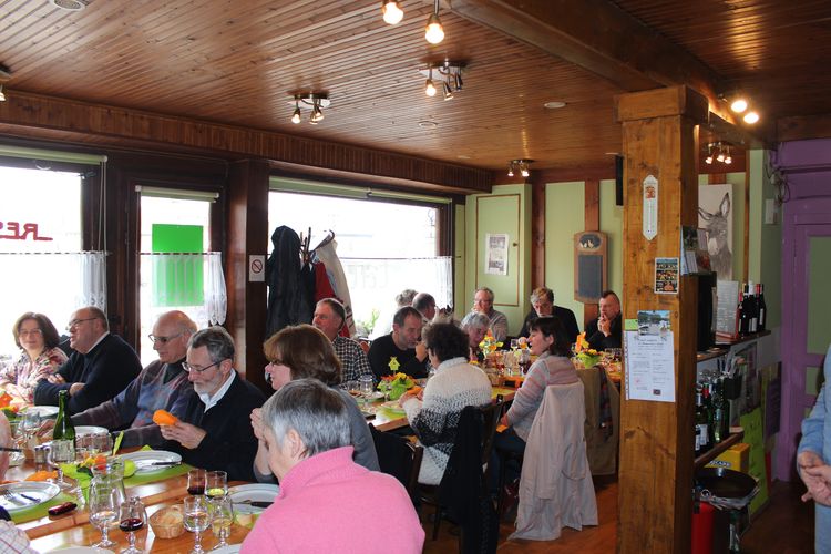 Ensuite, les adhérents se sont retrouvés à Moyaux dans un sympathique restaurant « le bonheur dans l’assiette » où deux adhérents nous attendaient. Merci à Annie qui a trouvé un endroit charmant pour nous restaurer et nous réchauffer.