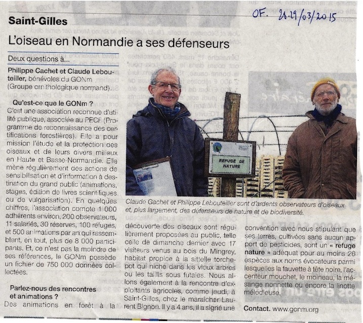 Une brève dans Ouest-France à ce sujet. Ajoutons une nuance pas toujours nette : le GONm n'attribue pas le titre de refuge de nature comme pourrait le laisser croire la légende de l'image. La mise en place de ces refuges résulte bien, comme il est dit par ailleurs dans le corps de l'article,d'une convention librement consentie entre les deux parties qui sont dans ce cas précis, le Maire d'Avranches et le GONm.