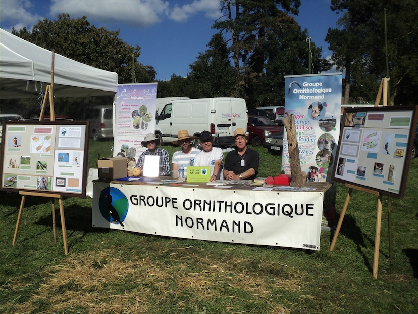 La fête ayant lieu sur la ferme du Petit Changeons, un refuge du GONm, ce fut l'occasion de sortir deux panneaux illustrant les richesses de nos refuge. Quelques adhésions, des rappels aux retardataires, des promesses de lots de pelotes, des contacts pour des sorties futures, il y a toujours à glaner comme une donnée de cigogne noire dans le bocage virois.