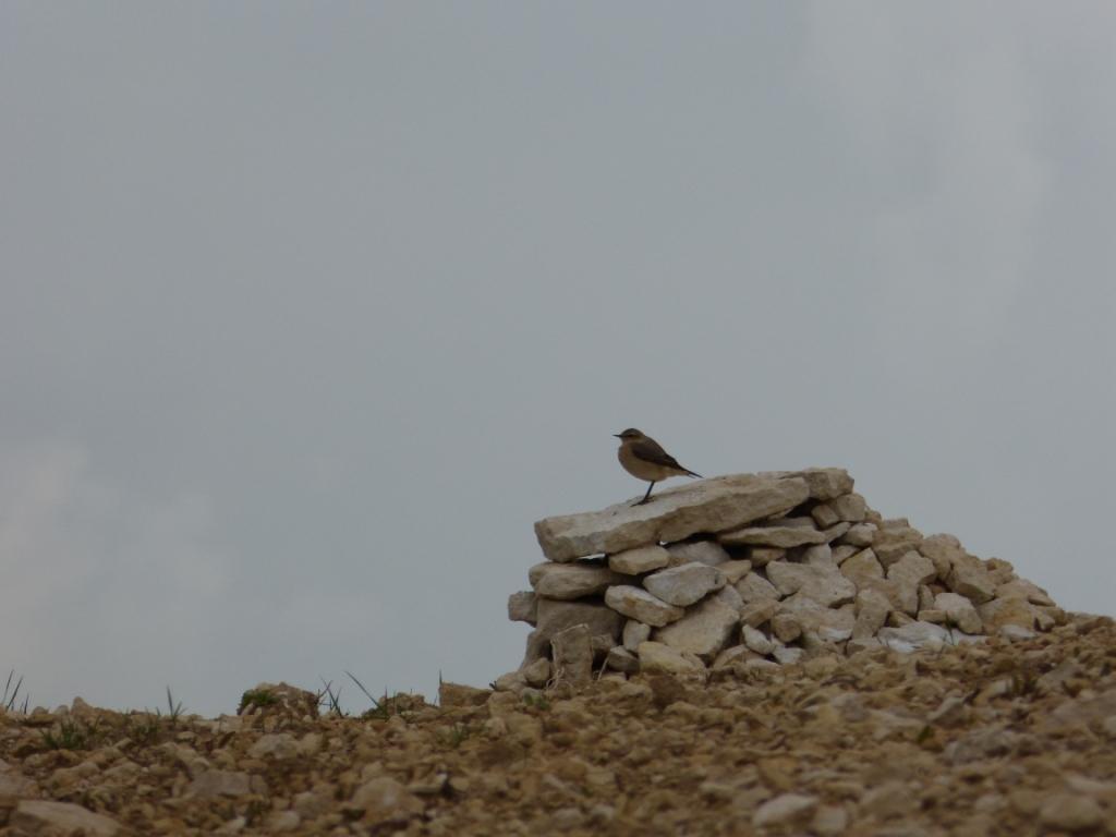 Dans l’attente de voir arriver les oiseaux nicheurs, tels l’oedicnème criard, le bruant proyer ou encore l’alouette des champs, un petit chantier a été réalisé le 8 mars sur la réserve. Afin d’accueillir un couple (ou plus !) de Traquets motteux, Delphine, Nicolas, Bruno, James et moi-même, avons installé 5 pierriers avec nichoirs.