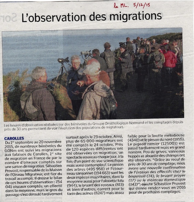 Un autre article a été consacré au bilan de la migration post-nuptiale à Carolles dans la Gazette de la Manche, hebdomadaire sud-manchois.