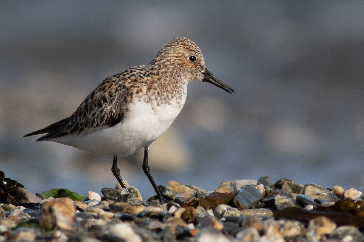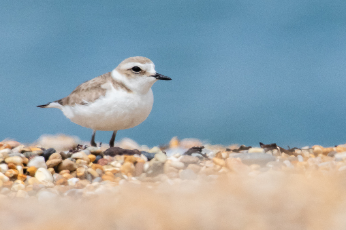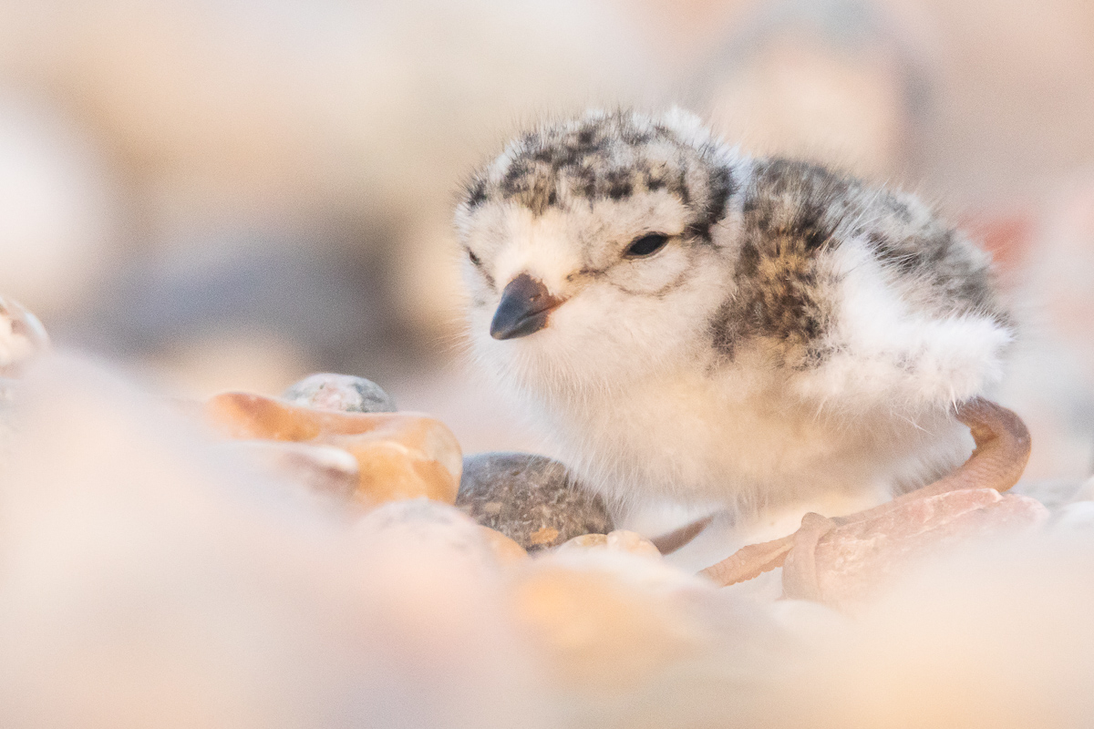 Retour dans la Hague pour finir juin, avec notamment 2 très jeunes grands gravelots détectés par Françoise Noël, à l'anse Saint Martin vers Omonville la petite ; ils sont déjà très doués pour se dissimuler dans les galets, et rester cachés sans bouger