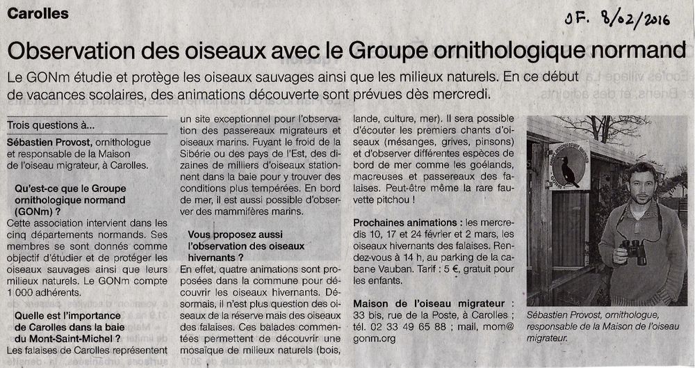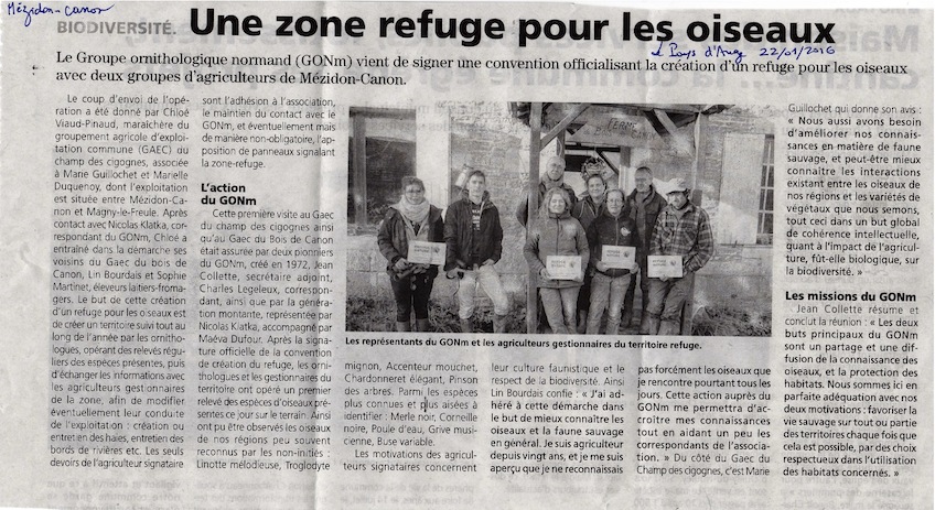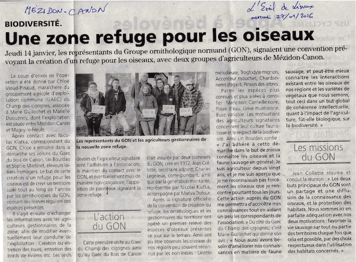 L'article de l'Eveil de Lisieux (27/01/16). En une semaine, le GONm a perdu son "m" par rapport à l'article du Pays d'Auge!