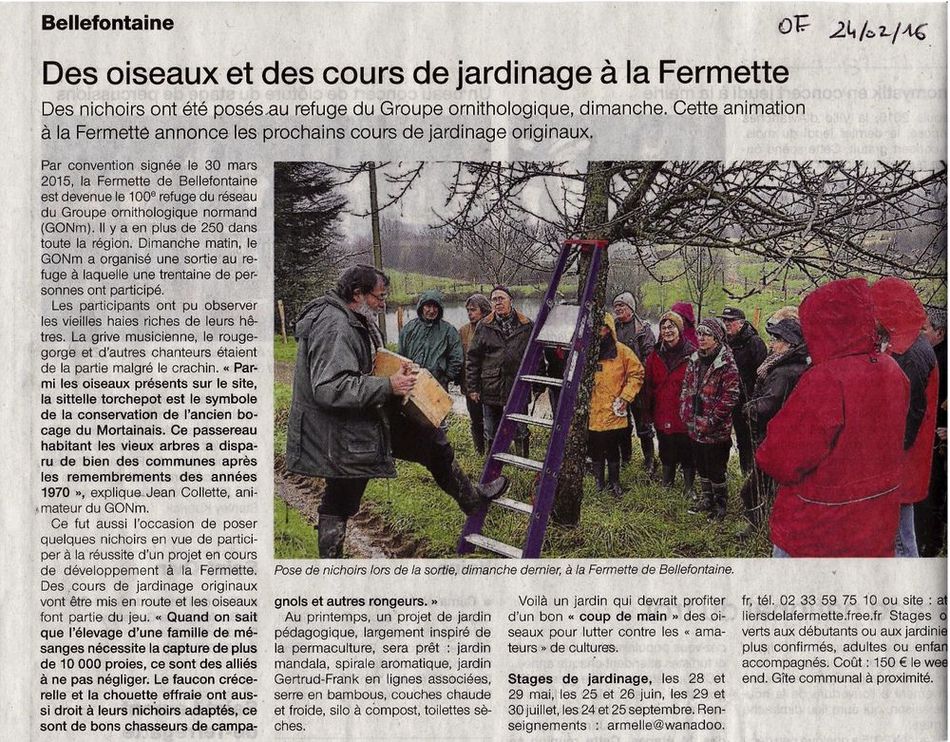 Rendons-nous ensuite dans le Mortainais au refuge de la Fermette à Bellefontaine/50 où l'on parle d' oiseaux du bocage, d'installation de nichoirs et de projets de jardin pédagogique et de stages de jardinage.