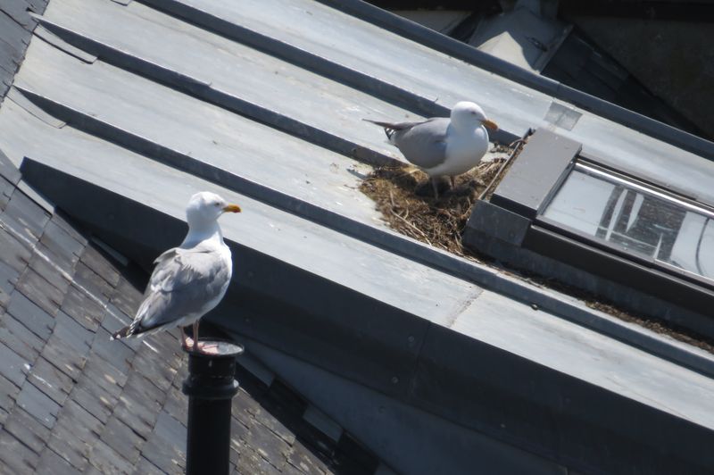 Aujourd'hui, 25 mai, observation de mes premiers jeunes Goélands argentés (GA) fraichement éclos sur les toits de Granville (50400).