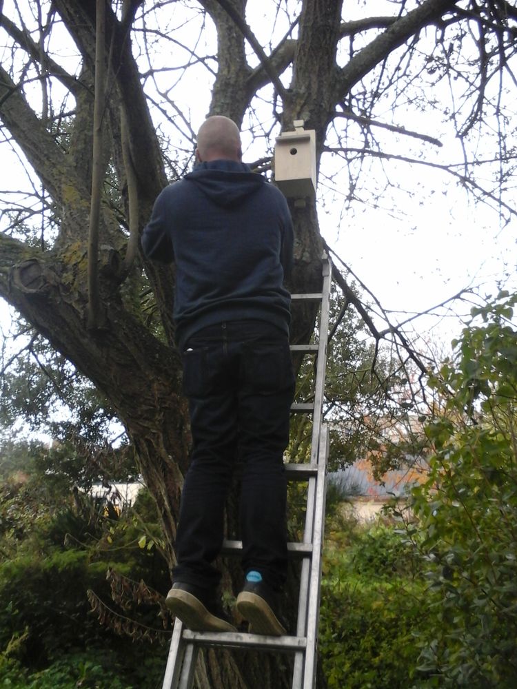L'installation des nichoirs s'est déroulée le 19 octobre en présence des élèves, des professeurs, de Franck Letellier et Philippe Gachet du GONm. Cette opération a été l'occasion pour les élèves de découvrir le site de l'EREA dans lequel ils circulent assez peu finalement, d'apprécier la diversité des essences végétales présentes (super pour des menuisiers!), d'apercevoir quelques espèces d'oiseaux et d'aborder de nombreux sujets liés à l'environnement. 7 nichoirs ont été installés au cours de l'après-midi. Merci à Franck, le roi de l'échelle, aux élèves pour leur motivation et aux professeurs pour leur implication dans la réussite du projet.