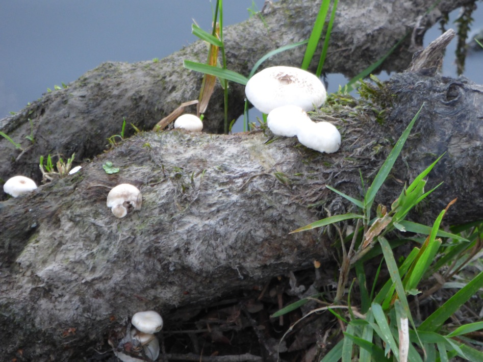 Sur la langue de sable mise à nu par la saison sèche sur le cours de la Sée, un piquet de bois en épave s'est retrouvé à l'air. Quelques jours plus tard, des champignons avaient poussé sur le bois, ainsi que sur des troncs d'aulnes morts en épave à proximité. Nos collègues mycologues Jacques Rivière et Jean-Pierre Louvet ont facilement déterminé le Lentin tigré, Lentinus tigrinus. Voila ce qu'ils en disent: "... Il colonise les bois exondés des queues d'étangs ou des rives de fleuves et rivières. Saules et aulnes sont souvent colonisés par le mycélium formé par des spores transportées par le vent mais aussi par le fil de l'eau. L'infestation de certains pieds d'arbres témoigne probablement de leur vieillissement et quand le niveau de l'eau baisse, les conditions d'éclosion des carpophores deviennent optimales."