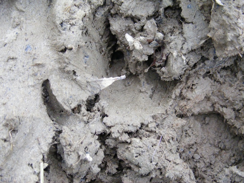 Décembre 2013, empreinte fraiche de sanglier sur la rive de la Sée. Cette année, la terre est trop sèche pour conserver des empreintes