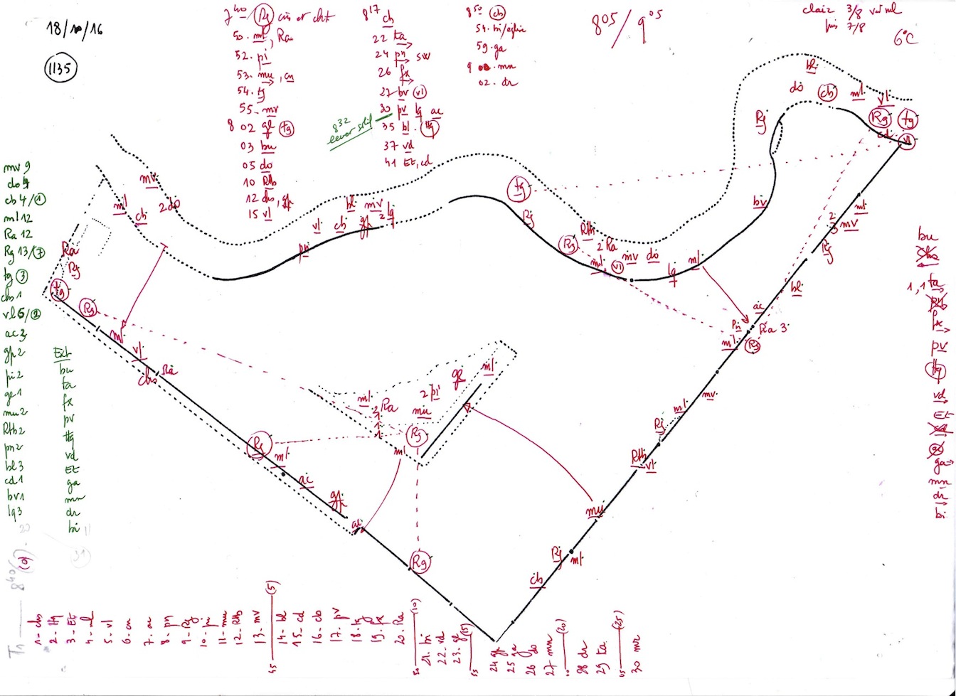 Le sanglier est passé au cours de la nuit, retournant quelques plaques de prairie et bousculant les piquets de clôture électrique! Deux plumées fraîches : grive draine et tourterelle turque.