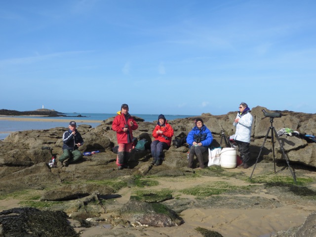 La semaine dernière, pour le dernier stage de l'hiver 2016-2017, les prévisions météorologiques étaient pessimistes. La traversée vers l’archipel s’est avérée moins agitée qu’envisagé et la première journée s’est déroulée à peu près correctement. Quelques prospections ornithologiques ont été réalisées et le doris a été mis à l’eau… au cas où ! Le lendemain, nous avons fait l’objet d’une tempête de ciel bleu et nous n’avons pas regretté les efforts de mise à l’eau du Bec-Scie ! Après une petite matinée de prospection sur la Grande Ile (enquête Tendance oblige), nous avons embarqué pour une belle journée en mer avec pique nique ensoleillé, de nouvelles prospections une rencontre avec un conchyliculteur en vue d’un éventuel déplacement de ses concessions qu'il souhaite faire en respectant les zones de nourrissage des oiseaux. Les conditions du vendredi étaient certes moins belles que la veille mais nous avons encore pu profiter pleinement de la journée ! 58 espèces ont été observées et dénombrées. Les grand cormoran couvent leurs nids, les goéland et huîtrier-pie occupent déjà leurs territoires et les passereaux les plus précoces chantent... Pas de doute, l'hiver est terminé et ce stage a clôt les sessions hivernales à Chausey. Un grand merci à tous les participants à ces stages qui se sont déroulés dans des conditions pas toujours faciles mais toujours dans la bonne humeur !