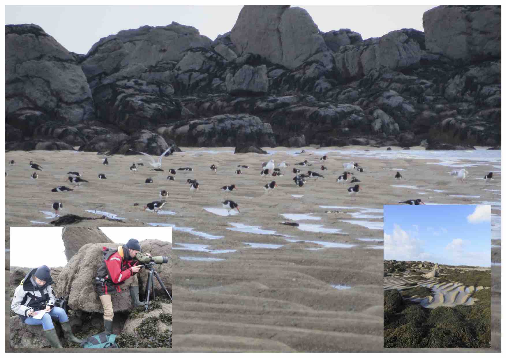 En janvier, lorsque nous avons embarqué sur la vedette qui nous emmène vers l’archipel, il a fallu nous rendre à l’évidence, nous ne mettrons pas le doris à l’eau. Le vent annoncé allait probablement nous empêcher de naviguer. Et c’est ce qu’il s’est passé puisque le vent a atteint des vitesses supérieures à 100km/h. De quoi nous inciter à rester à l’abri ! Malgré tout, grande marée aidant, nous avons pu réaliser, à pied sur l'estran, une grande partie des suivis habituels, de poursuivre la dératisation engagée en octobre et de faire le point avec A. Antoine qui entretient les milieux sur quelques îlots dans le cadre d’un contrat Natura 2000. 52 espèces ont tout de même été contactées lors de ce stage dont quelques espèces non contactées en décembre, portant à 67 le nombre d’espèces observées dans le cadre de l’atlas.