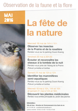 Le 20 mai 2016, une sortie sera animée par James Jean Baptiste, à la prairie de Caen, dans le cadre de l'évènement : "La Fête de la Nature" .