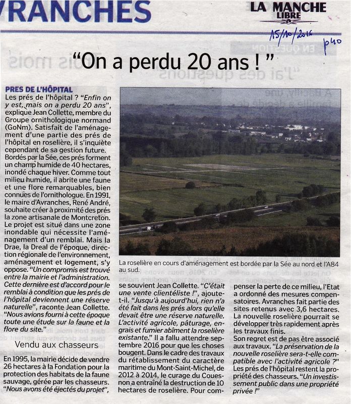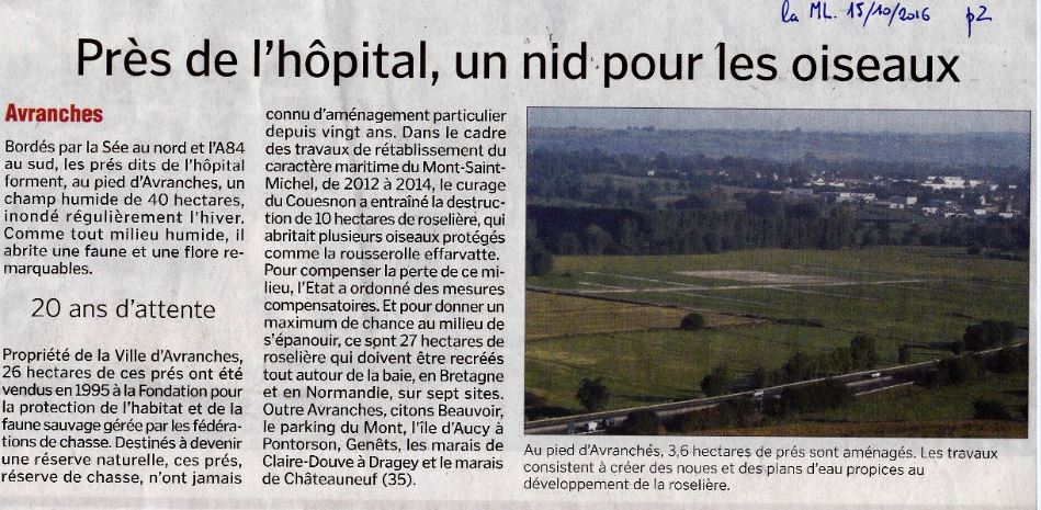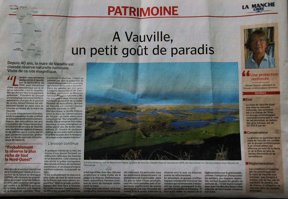 Cet article a été retrouvé par hasard dans une salle d'attente. Heureusement parce que, publié en date du 10 septembre 2016 dans la Manche Libre, il se révèle complet et intéressant, avec un souci d'informer le plus précisément possible sur l'historique de la réserve et son intérêt naturaliste.