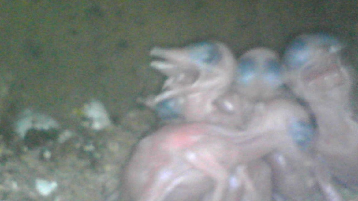 Le suivis de nidification de martin-pêcheur est parfois difficile surtout quand le tunnel donnant accès à la chambre est coudé. Tout récemment, je me suis équipé d'une caméra endoscopique. Voici donc un cliché pris dimanche dans un terrier à Rouellé.La photo n'est pas de très bonne qualité , mais nous pouvons y voir les 6 poussins.