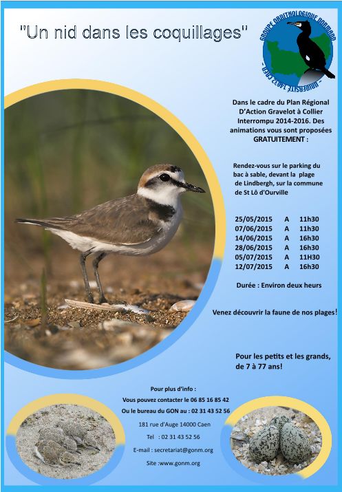 Rendez-vous à la cale de Blainville-sur-Mer Découverte gratuite d'une espèce discrète mais fragile qui niche sur nos plages d'avril à août avec Clémence Michèle. Renseignements au 02 31 43 52 56