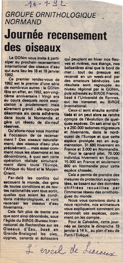 - L'Eveil de Lisieux, 16 janvier 1992