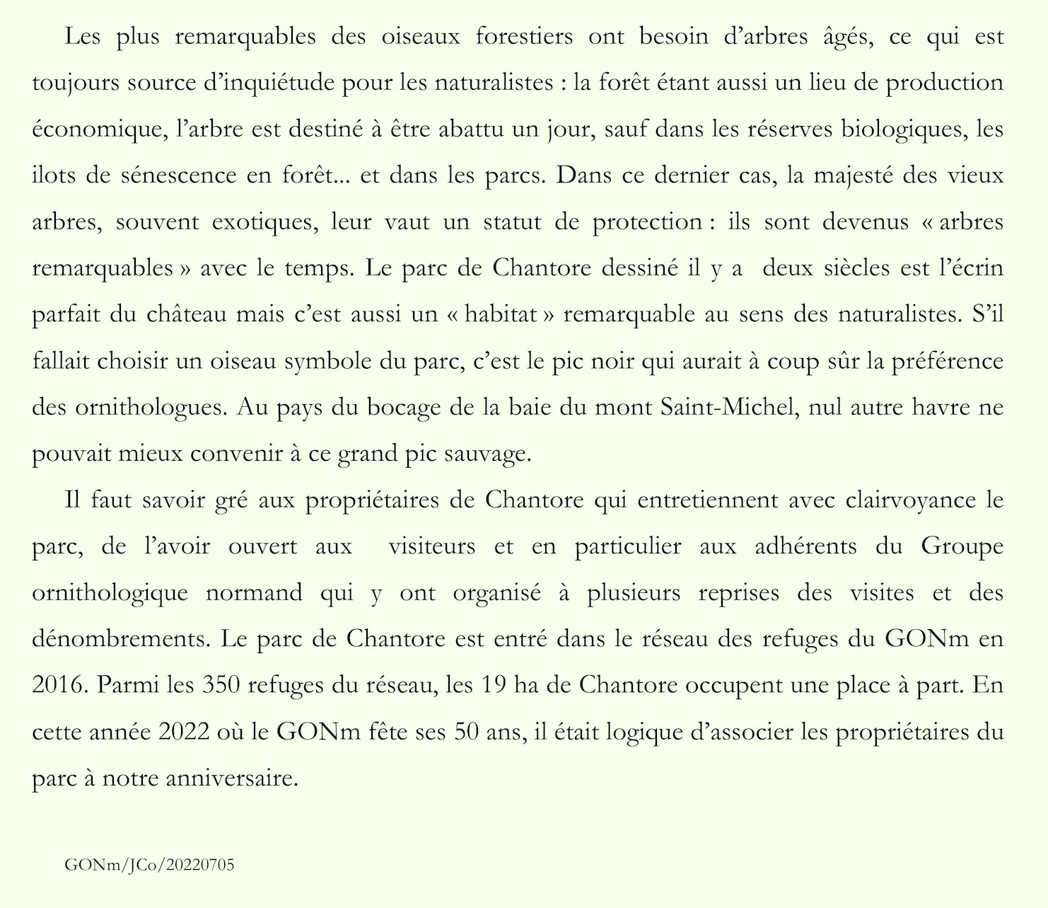 50 ans du GONm : à l'honneur en juillet, le parc du château de Chantore à Bacilly/50