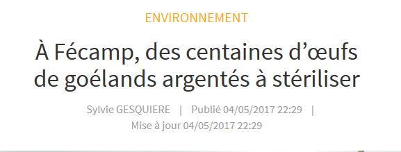 Cet article reconstitué est paru dans Paris-Normandie numérique : nous n'en avons qu'une partie. Le GONm participe à la formation des personnels qui seront chargés de la stérilisation des oeufs de goéland argenté nichant sur les toits de la ville de Fécamp.