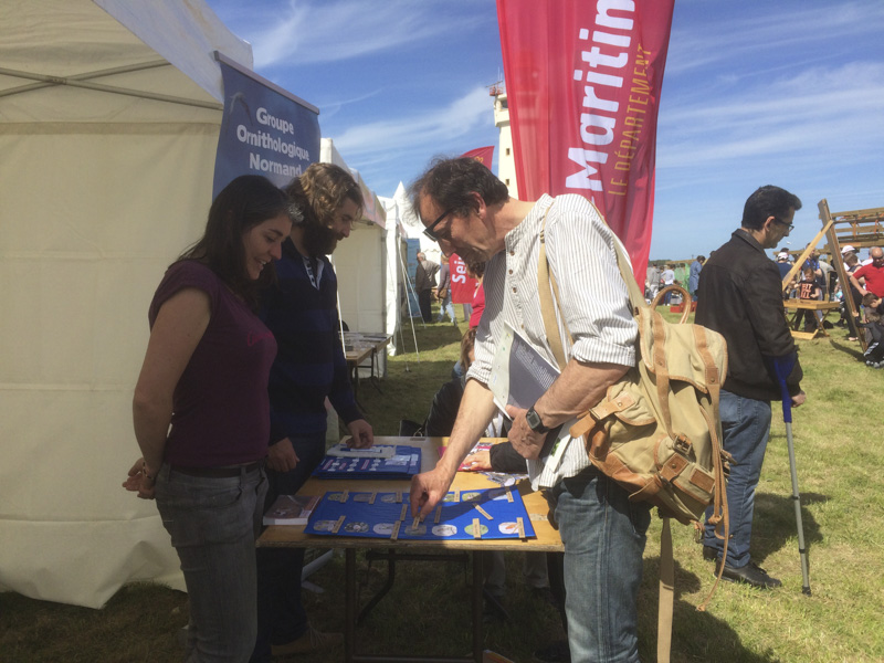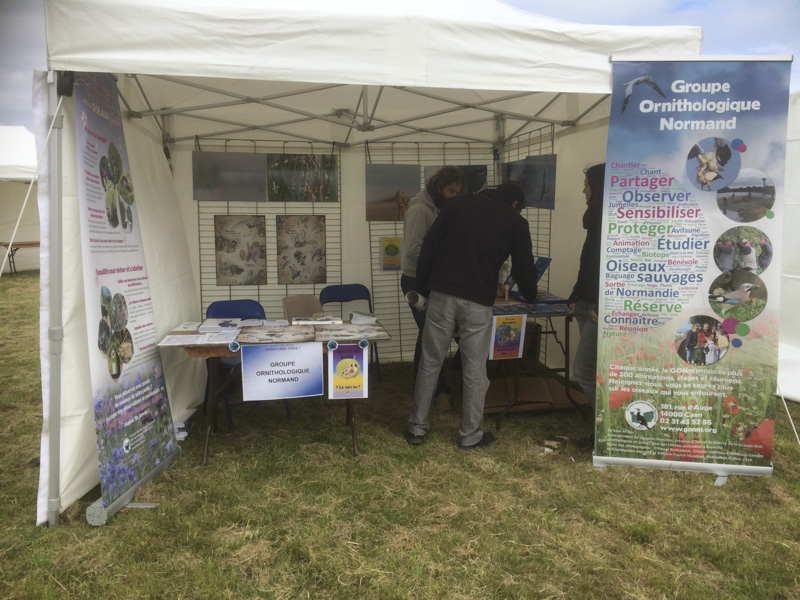 Dimanche 14 mai, le GONm était présent à la fête de l'Espace Naturel Sensible à Sainte-Adresse, sur la pointe de la Hève. Deux animations étaient organisées à l'intention des visiteurs : elles ont accueilli 5 personnes le matin et 20 l'après-midi. Le faucon pélerin du secteur a participé lui aussi. Le stand tenu par Céline Chartier, Willy, stagiaire, et sa compagne a reçu la visite de 250 personnes, 200 adultes et 50 enfants. Une série de jeux autour des oiseaux étaient proposés permettant l'échange et la transmission d'informations sur l'association et l'avifaune locale.