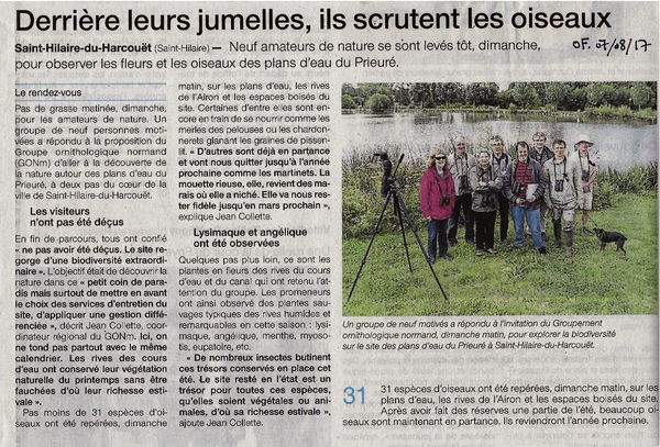 La démarche n'a de pouvoir qu'en passant par la presse : l'explication du laisser faire doit être expliquée au public local et rien ne vaut quelques articles dans les journaux locaux. D'où le bref texte proposé avec photo de groupe, passage obligé pour obtenir un article... Merci donc aux collègues du GONm qui ont répondu en urgence à l'invitation à participer à cette sortie non programmée. Les résultats paraitront sur le blog du sud Manche quand Thierry sera de retour et opérationnel!